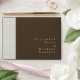 Make a sophisticated first impression with this Moody Coffee Arabesque Boho Script Wedding Envelope. The rich, warm Coffee Romance base provides a dramatic, high-end backdrop, while the subtle Ivory Damask/Arabesque pattern along the border introduces a touch of classic, boho elegance. This high-contrast design ensures your recipient and return addresses stand out clearly and beautifully. The clean, minimalist uppercase font for the guest address contrasts beautifully with the elegant script used for the return address, creating a balanced aesthetic that is both modern and refined. This envelope seamlessly packages your invitation suite, instantly communicating the sophisticated, warm, and natural tone of your upcoming celebration.
