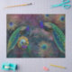 "Moody Elegant Peacock Feather Gold Blue Purple Glitter Decoupage Tissue for Gift Wrap or Decoupage." A moody, fun fantasy style vintage and modern art design with elegant Peacocks in bold shades over shimmering peacock coloured damask patterned background with gold glitter Peacock feathers, flowers, twinkling star backdrop. Elegant stylish for a fun, girly maximalist home decor or gift wrap design. Art graphically designed by internationally licensed artist and designer, Audrey Jeanne Roberts. Copyright.