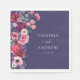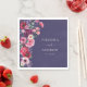 Moody Floral Wedding Napkins. Add elegance to your wedding reception with these beautifully designed paper napkins, featuring a lush side bouquet of watercolor florals in jewel tones against a deep navy blue background. Perfect for any season—from romantic fall and winter weddings to charming spring and summer garden celebrations—these customizable napkins enhance every place setting with sophistication and charm, making even the smallest details unforgettable. NOTE: the text is Ivory.