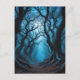 A moody artwork of a forest with gnarled trees and eerie blue lighting, capturing a mysterious and atmospheric woodland scene.