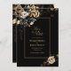Inform your friends and loved ones of your upcoming wedding with this elegant black and gold floral wedding save-the-date card. This card features an arrangement of black, gold, and cream roses and soft gold bokeh in the background behind the blooms adding a touch of whimsy. Enclosed within a simple gold border, the customizable text allows you to add your own information to the card.