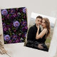 Elegant floral save the date featuring your full-bleed vertical engagement photo on the front. "Save the Date" is displayed in white, modern typography overlaying your photo. An optional gradient is provided to make your text stand out from the photo. Personalize the front of the photo save the date with your names, wedding date, and wedding location. The back of the card displays a floral pattern of purple and burgundy flowers with lush green leaves. The purple floral save the date was designed to coordinate with our Moody Gothic Floral wedding collection.