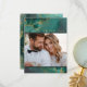 Your dreams are finally coming true and this flowing, alcohol ink abstract design sets the perfect tone for the fabulous wedding you always imagined. In shades from sea glass green to dark emerald, accented with glittering gold, the wedding 'Thank You' card shown here provides a template to easily add your own photo and thank you message. Search ID988 to see other pieces in this coordinated wedding set.
