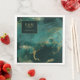 Your dreams are finally coming true and this flowing, alcohol ink abstract design sets the perfect tone for the fabulous wedding you always imagined. In shades from sea glass green to dark emerald, accented with glittering gold, the coordinating paper napkin design shown here on an optional dark green background, provides a template to easily add your initials, wedding date and thank you message. Search ID988 to see other pieces in this coordinated wedding set.