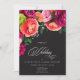 Moody Luxe Floral Vibrant Pink Black Wedding Invitation
