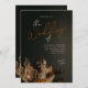 Moody and Dark Modern Boho Rustic Dried Flowers Wedding Invitation. This wedding invitation has a high resolution, real photo image of dried floral bouquet and pampas grass as a background. Dark and moody colour palette of ivory, gold, black, and forest green coupled with modern typography. The back has space for a monogram. All text is editable, just click the personalize button to the right of the image. Check out the matching items in the collection for your event!