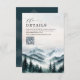 This wedding details card beautifully showcases a moody mountain landscape, with misty pine forests and soft fog creating an atmosphere of mystery and romance. Ideal for nature-loving couples, it blends rustic charm with elegant design. The cool-toned hues and captivating scenery evoke a sense of calm and intimacy, while the refined typography adds sophistication. Perfect for those drawn to the quiet allure of the wilderness.