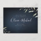 Modern chic minimal watercolor botanical foliage greenery design on moody navy blue background, simple and elegant, great for modern wedding, rustic wedding, and botanical garden wedding in summer and fall.