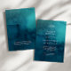 This moody ocean watercolor elopement announcement is perfect for your simple tropical boho elopement. It is designed with minimalist white tropical leaves and a stunning dark blue-green background.
