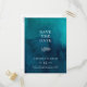 Cette moody ocean aquarelle enregistrer la date carte postale est parfait pour votre simple mariage de saumons boho tropicaux. Il est conçu avec des feuilles tropicaux blancs minimalistes et un étonnant arrière - plan bleu-vert foncé.