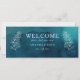 This moody ocean watercolor hanging seating chart header is perfect for your simple tropical boho wedding. It is designed with minimalist white tropical leaves and a stunning dark blue-green background.