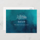 This moody ocean watercolor song request RSVP postcard is perfect for your simple tropical boho wedding. It is designed with minimalist white tropical leaves and a stunning dark blue-green background.