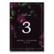 This moody purple blooms black pattern table number is perfect for a modern wedding. The elegant floral design features dark plum purple tulip flowers with emerald green leaves.