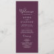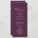 Ce programme de mariage de prune mauve et mauve est parfait pour un mariage moderne. L'élégante décoration de bijoux en boho est composée d'une solide couleur violet aubergine foncée et d'une touche bohème moderne. Coordonnées avec la collection Moody Purple Blooms de Fresh & Yummy Paperie. Inclure les noms du couple, la date et l'emplacement du mariage, le message de remerciement, l'ordre de service, la fête de mariage et un mémorial optionnel "en mémoire d'amour".