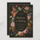 This enchanting and unique wedding invitation features a lush floral frame with various shades (and types of) pink flowers, in the style of the old Dutch masters, set against a deep and moody black background. The elegant calligraphy and gold-hued text add a touch of luxury and sophistication. A lovely choice for brides who love the moody romantic aesthetic, the gothic theme and dark wedding invitations, this invitation is sure to turn heads and create a sophisticated and romantic atmosphere for your special day.