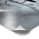 The moody sky tries to hide a crescent moon that glows at night next to a perched raven.