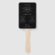 Moody Tropics, wedding program hand fan. Dark tropical palm frond photography. Features, white typography design style mix of edgy script and bold type.