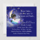 Sweet baby moon and stars we love you to the moon and back baby boy shower invitations. This elegant night time moon and stars baby boy shower invitation is easily customized for your event. You can add your event details in the font style and wording of your choice, as well as change the background colour to whatever you prefer.