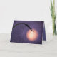 This Halloween card features an abstract glowing pink and pale yellow moon on a light purple textured background with a single strand of grass curving in front. The text reads: Beware the moon! It can be customized to suit your needs.