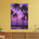Palm trees with moon in a bright pink and purple sky, reflecting on still water. | Design Pics/Ron Dahlquist | AssetID: 124811283