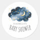 These Moon and Stars Baby Shower Envelope Seals are perfect for a simple baby shower. The modern whimsical design showcases a navy-blue watercolor cloud shape adorned with a yellow crescent moon and scattered stars.