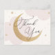 Thank your guests for celebrating the mama to be! Moon and Stars themed baby shower thank you postcard features watercolor clouds and gold stars with gold glittery moon. Personalize with your information or click "Click to customize further" to edit font styles, size and colours.