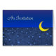 A custom folded invitation with elegant vintage art of a starry evening night with a glowing crescent moon against a dark blue sky. Click Customize It to change fonts, sizing, add or remove text and more.