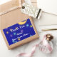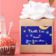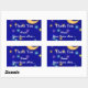 A custom Thank You sticker with white script and italic letters and elegant vintage art of a glowing moon and colourful stars on an etched blue background.