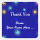 A custom Thank You sticker with white script and italic letters and elegant vintage art of colourful stars on an etched blue background.