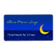 Custom labels with elegant vintage art of a starry evening night with a glowing crescent moon against a dark blue sky. Click Customize It to change fonts, sizing and more.