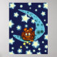 A sweet little bear on a moon in a dream like setting sharing his dreams with the world. Perfect for any little dream professional.