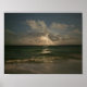 Moon behind clouds over ocean with waves canvas pr poster