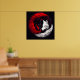 A hyperrealistic design showcasing a red and white yin-yang wolf with the dynamic balance and intense detail of the wolf's powerful gaze.