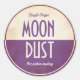 A Halloween sticker for Moon Dust. The design features "Moon dust" written in a retro style on a cream and purple background with a tagline saying "for potions".