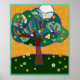 Luscious digital art nouveau stylish modern poster featuring the moon rising through the branches of an orange tree