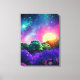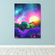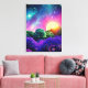 Abstract artistic landscape inspired by Space and tropic nature. Blend of magical colours like purple, green and pink. Ideal style for living room, bedroom or children's room.