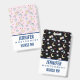 A cute pattern with happy stars, moon, clouds and rainbows on a soft pastel pink background. The back has a black background instead of pink.