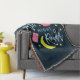 Curl up during the cool weather with this bookish blanket featuring the words "All Night Reader" surrounded by the yellow moon and stars and pink books against a dark blue background. It would look great in your reading nook or home library.
