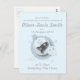 Announce the birth of your precious baby by customizing this postcard with all the important details of your baby's arrival, featuring a Pastel Blue/gray space graphic with rocket, moon and stars.