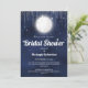 Romantic girls night out bridal shower invitation with moon and stars hanging on the strings of lights. Rustic invite for your rustic country, night sky inspired bridal shower.