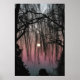 On a winter's evening, the full moon shines from behind barren branches in a twilight sky. Photography by Sarah McTernen