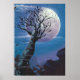 Moon Tree at night under the full moon in this creepy landscape illustration evoking the mood of a creepy night in Halloween.