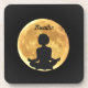 This coaster features a silhouette of a calm woman meditating while overlooking a huge moon. This unique coaster can provide a dramatic but calming touch while helping to protect your furniture. The design has the phrase "Breathe" but you can personalize with your name, your own message, or the name of your studio. Namaste.