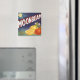 Display a piece of vintage art on a 2 inch square magnet. This magnet is adorned with the Moonbeam Brand citrus crate label. The illustration has a grapefruit and orange with leaves and orange blossoms. In the background is the moon with some clouds. The design has been enlarged to fill the entire print area to stylize the label design. If you wish to see the whole label, click "Customize It!" and use the controls to size the art to your liking. A little history of the Fruit Crate Label From around 1880 to 1940, the western United States experienced decades of intense competition among fruit growers to create the most colourful, artistic and eye catching paper crate labels used to identify their citrus fruit crates. German immigrants combined their printing and illustration skills to create fruit crate commercial art unsurpassed anywhere in the world. German Americans for decades had been using lithography to create labels for wine bottles. California orange growers and shippers adapted the wine label concept to a larger format and fruit crate labels were born. Originally, the process used to create the labels was and is known as stone lithography, where the illustration was etched directly on a piece of limestone; a process requiring great talent and skill. Fruit crate labels from the 1880's through the 1920's were mostly produced by this stone lithographic process. More modern printing techniques were used after this period until the 1940's and 1950's when wooden crates and labels were mostly replaced with preprinted cardboard boxes. Today, fruit crate labels are highly collectable and recognized as an outstanding example of commercial art and illustration from a bygone era.