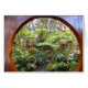 Moongate through which you enter jurassic looking rainforest in which treehouse rises over an extinct lava bubble