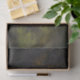 This design features a painting by romanticist American artist Ralph Albert Blakelock (1847–1919), who was known primarily for his landscape paintings related to the Tonalism movement. This image shows a natural landscape in the moonlight; the black shadowy outlines of trees can be seen as the moonlight shines through their branches; water can be seen gently rippling on a lake in the distance. It is an atmospheric and romantic scene. This is one of many similar scenes that Ralph Blakelock painted at night in the American West.