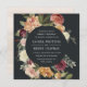 Our Moonlight Garden wedding invitation in a unique square format frames your wedding details with a circle of painted watercolor roses and mums in autumn shades of burgundy, marsala, blush pink and peach, with dark green foliage and leaves. An elegant choice for fall or winter weddings, with a dramatic off-black background and rich colours.