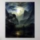 A sailboat in the distance at night; moonlight, stars and yellow clouds complete this beautiful poster by Norwegian artist