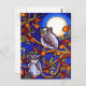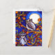 2 owls in the moonlight among colourful fall leaves, from original folk art painting.