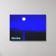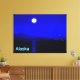 Moonrise in the Inside Passage off the coat of Alaska. Mountains in the distance and a fishing boat heads north. Text reading "Alaska" also appears.